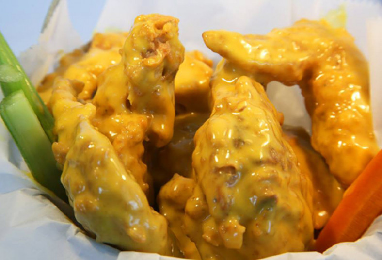 6 piezas de alitas de pollo, bañadas en salsa honey mustard, acompañado de papas fritas nativas crocantes.