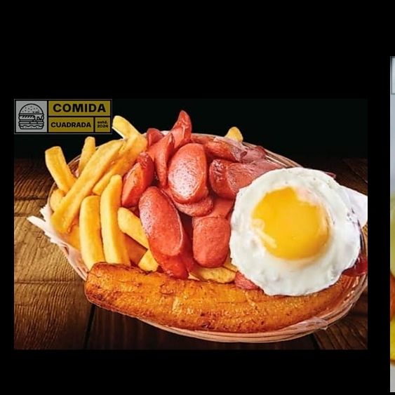 Hecha a base de 180 gr de pura carne artesanal, huevo frito, lonja de queso derretido, chorizo, Plátano, acompañado de papas fritas nativas crocantes más ensalada fresca.