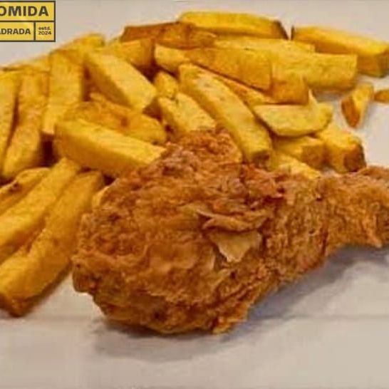 Pieza de pollo broaster acompañado de crocante papa nativa