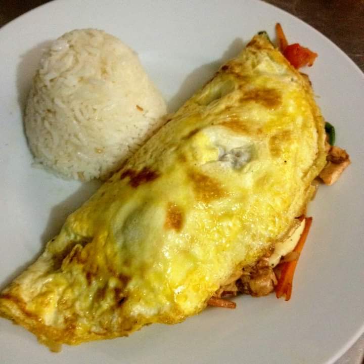 Tortilla más porción de arroz.