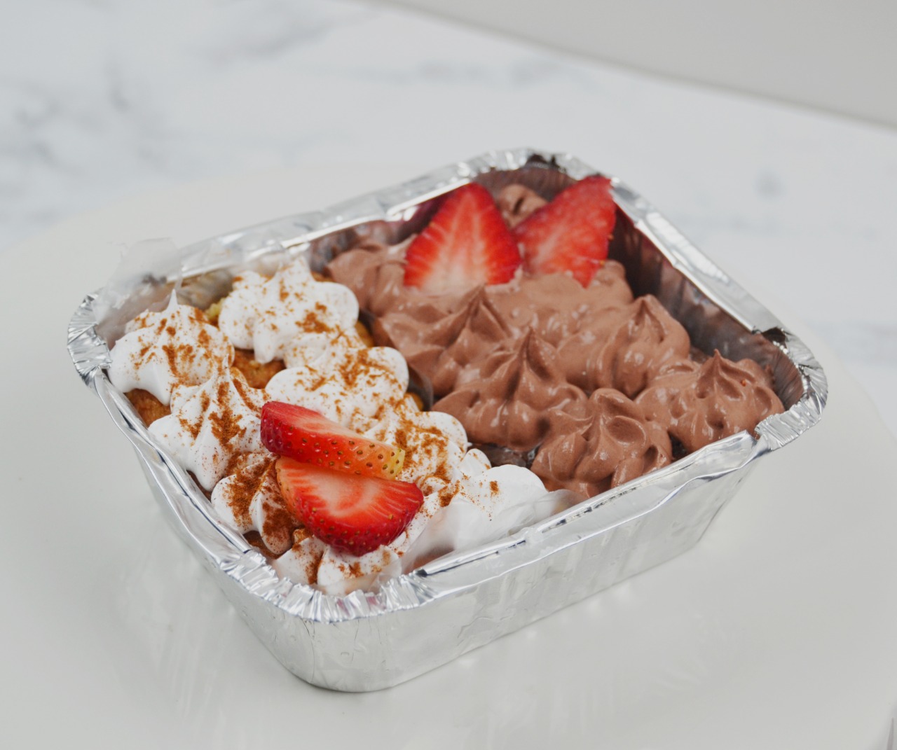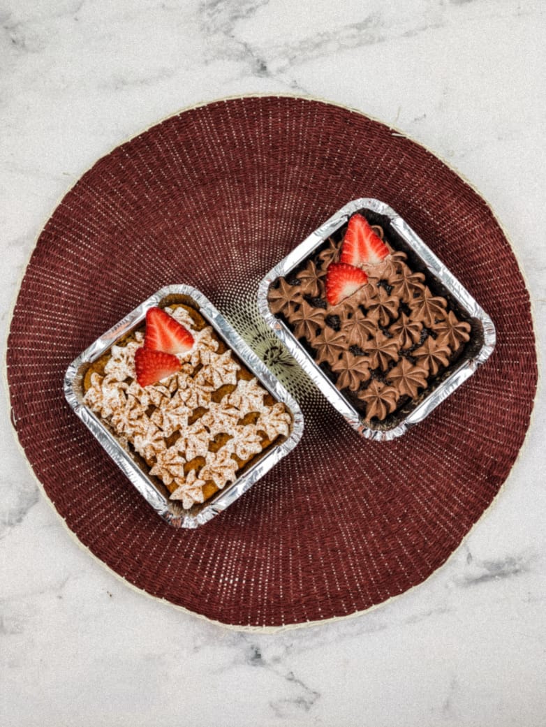 50 % Tres leches de chocolate más 50 % tres leches tradicional.