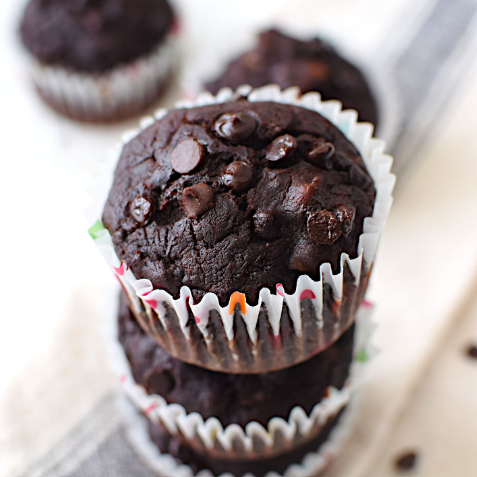 Muffin de chocolate, con chispas de chocolate y trozos de chocolate con leche