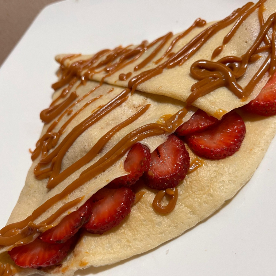 Crepe clásico relleno únicamente de manjar blanco.
