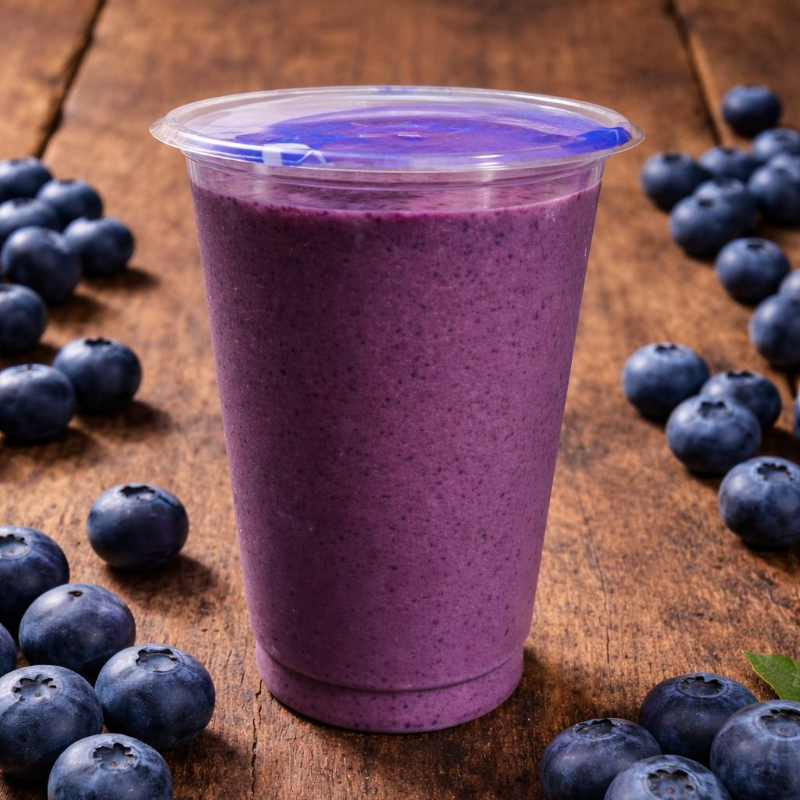 Delicioso jugo de arándanos con yogurt natural y leche fresca. Un jugo refrescante y helado, irresistible no tomarlo.