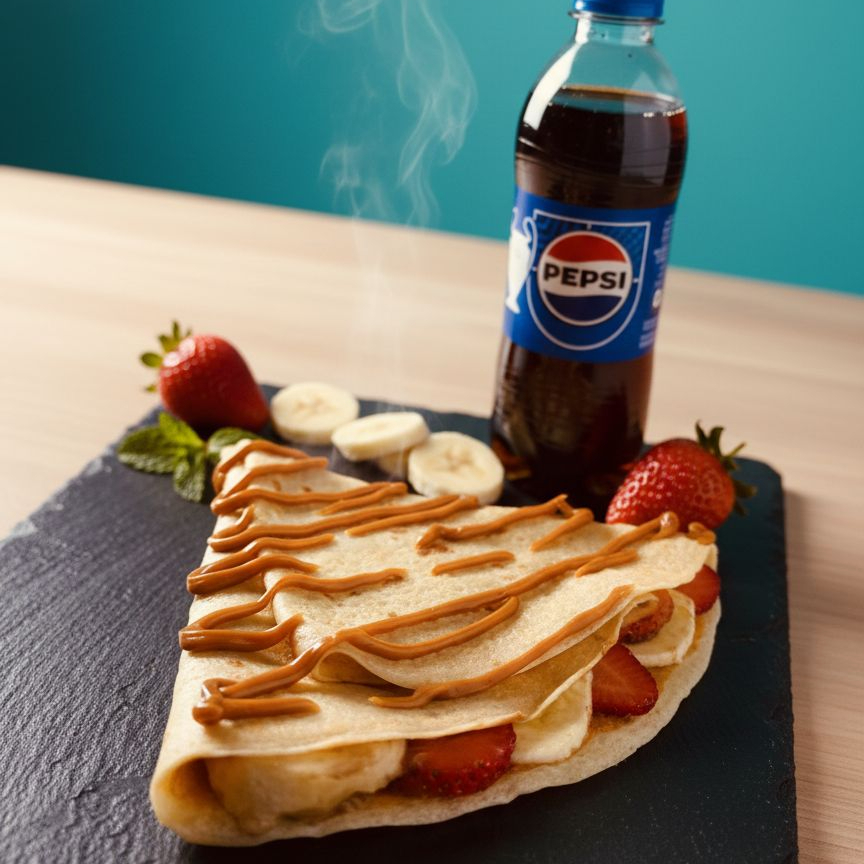 Crepe de Manjar con Fresa y Plátano más Pepsi
