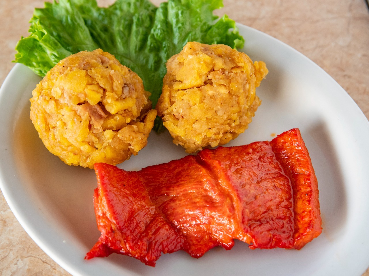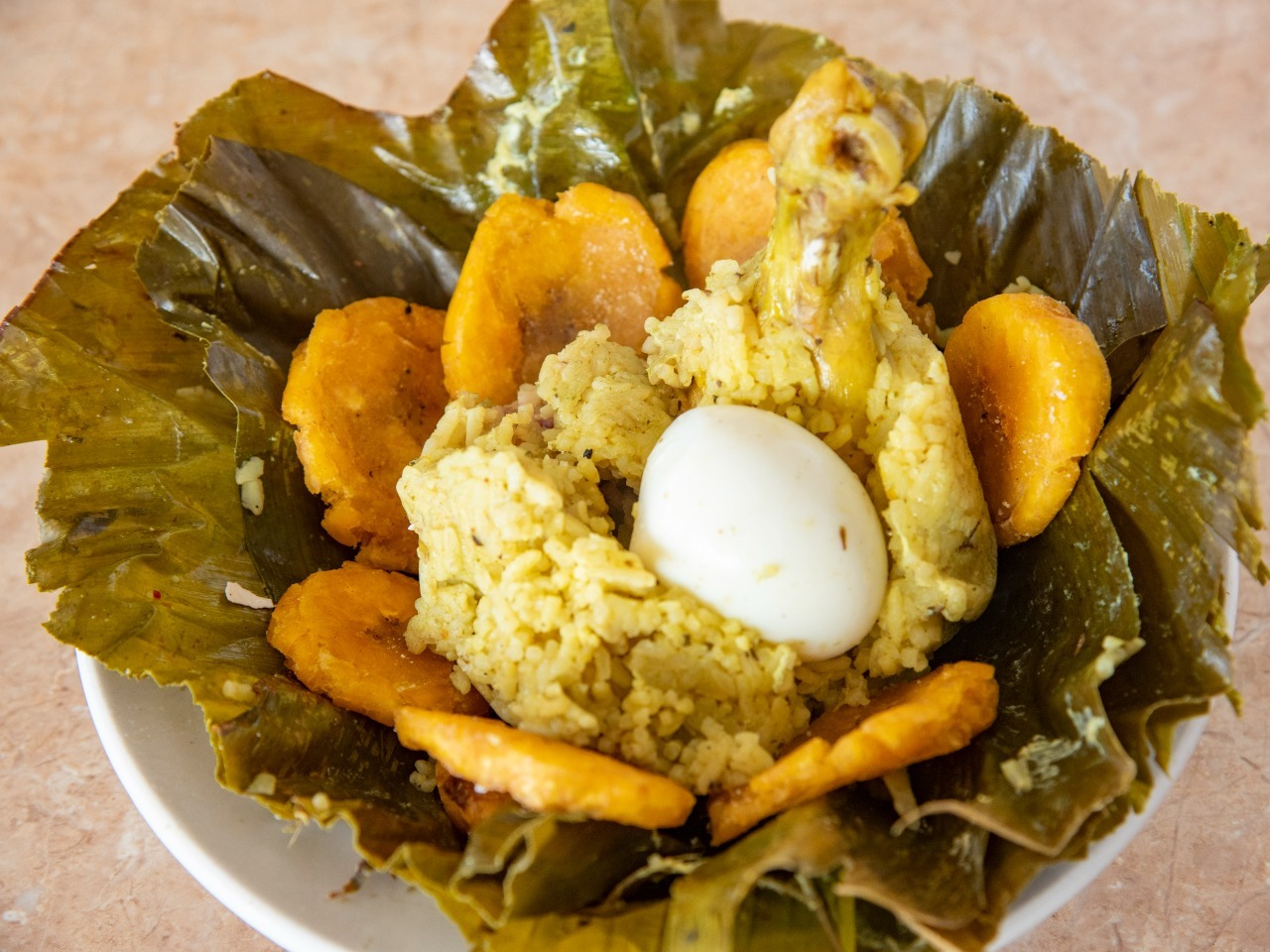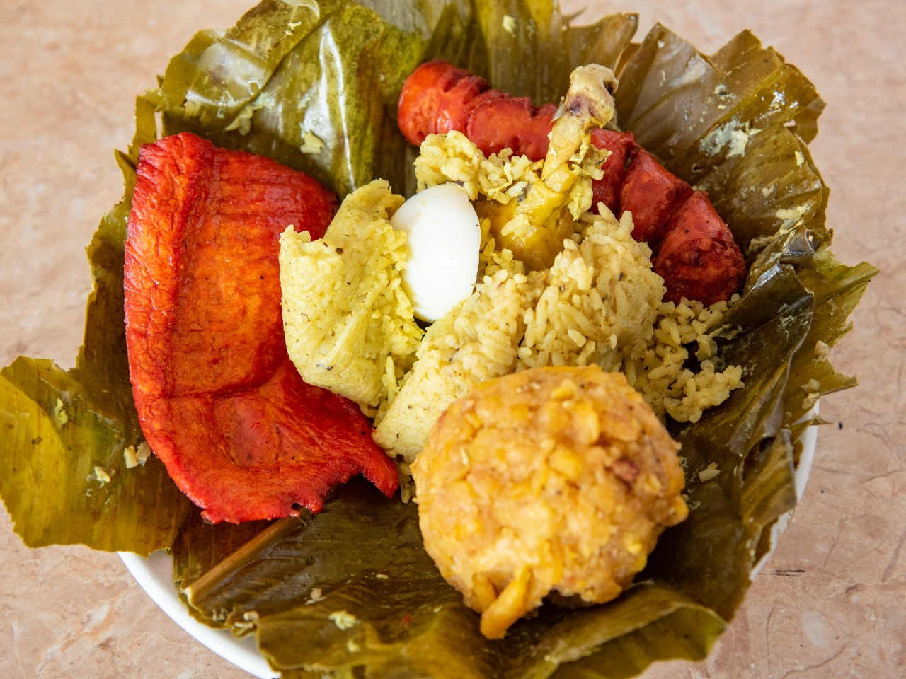 Juane, doncella, tacacho, cecina, chorizo, patacones y maduro frito.