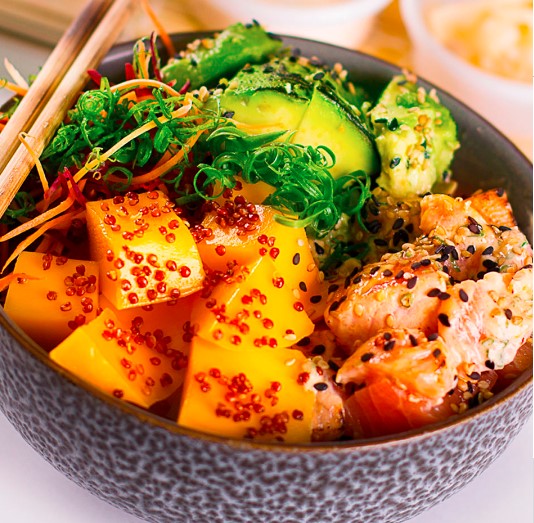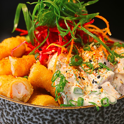 Trucha, salsa spicy japonés y semillas de ajonjolí.