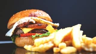 200 g De hamburguesa de carne, 2 quesos, huevo frito, papas fritas y ensalada.