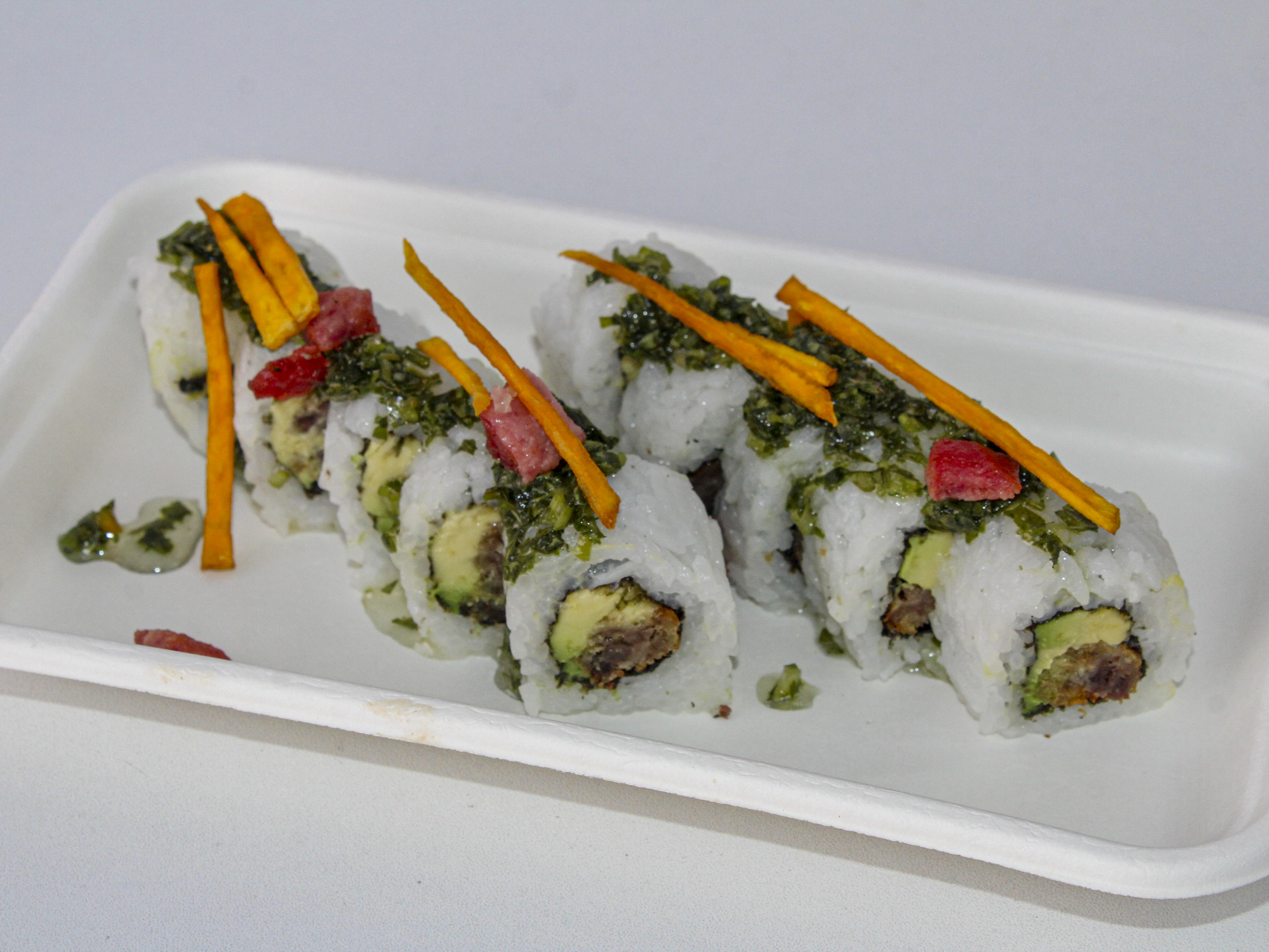 Maki de carne con chorizo, chimichurri, 10 unidades.