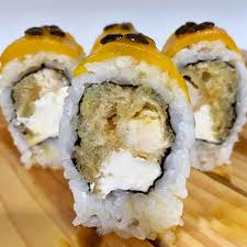 Maki furay salsa tártara coronado con chicharrón de pescado.