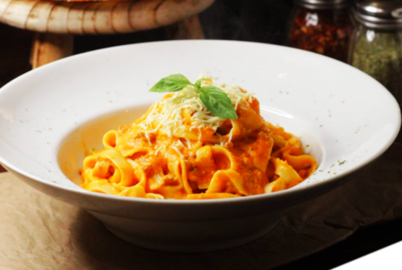 Con jamón, tocino, salame, maíz, cebolla y parmesano.