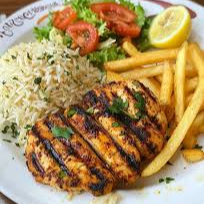 Pechuga a la plancha con arroz, papas y ensalada