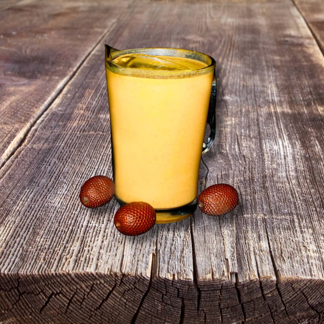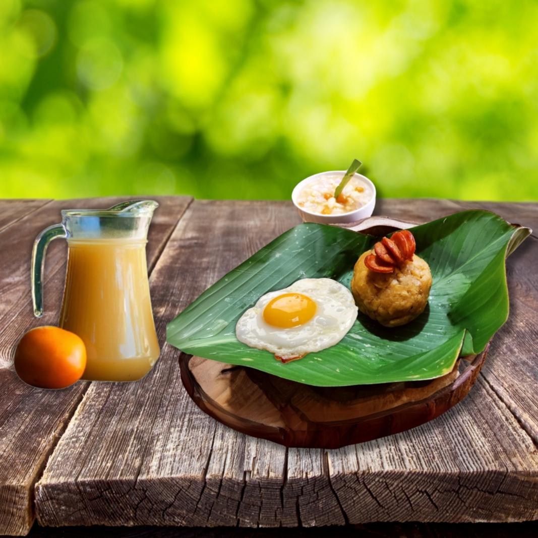 01 bola de tacacho + 01 huevo frito + 1/2 cocona + aji de cocona