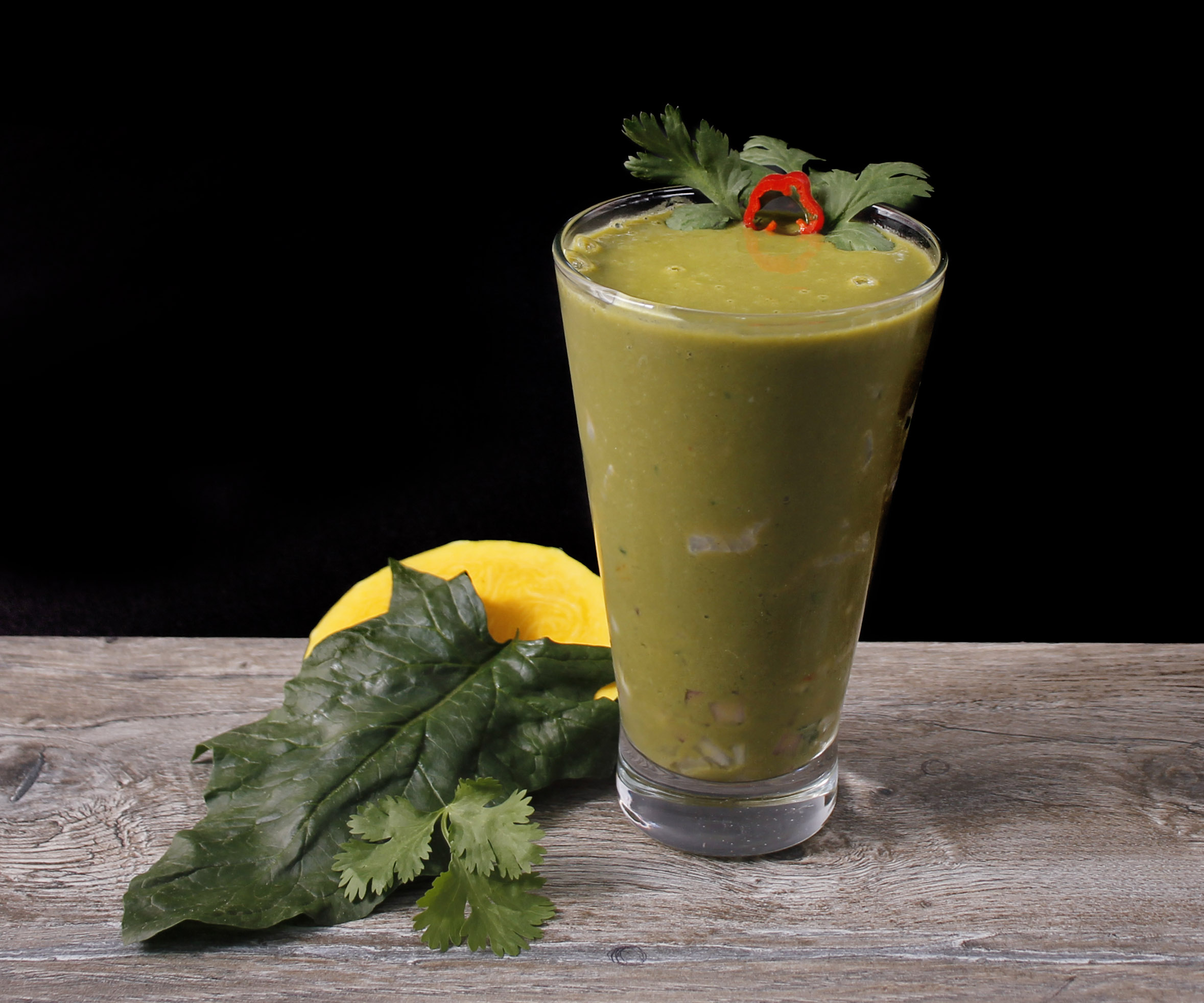 A base de crema de loche, espinaca y culantro del norte peruano.