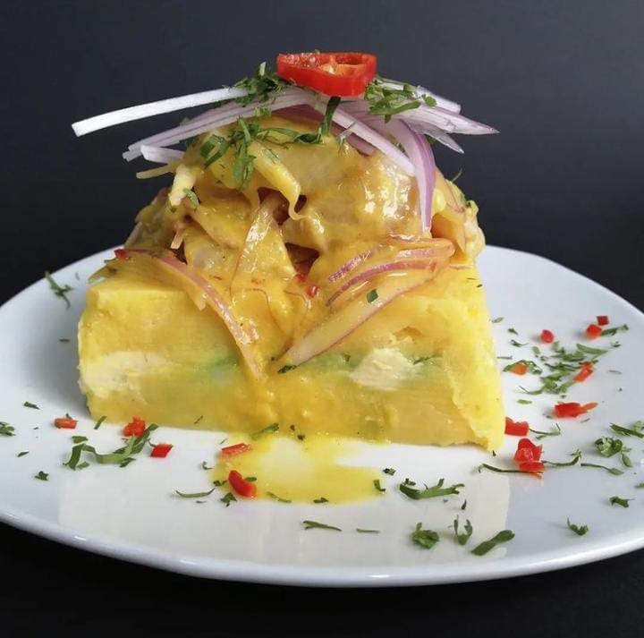 Causa artesanal con un delicioso montado de tu leche de tigre preferida.