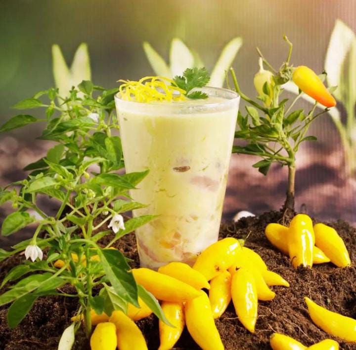 A base de pimiento amarillo, ají amarillo y un toque de huacatay.