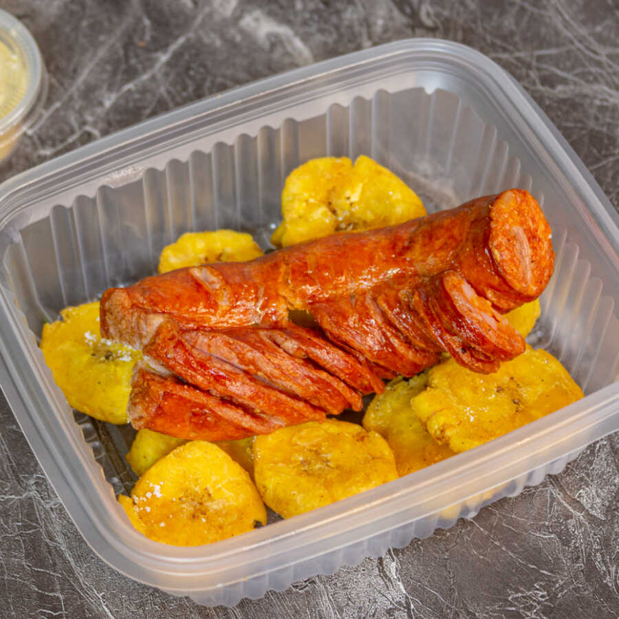 Chorizo a la Parrilla con Patacones