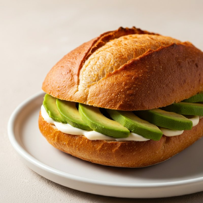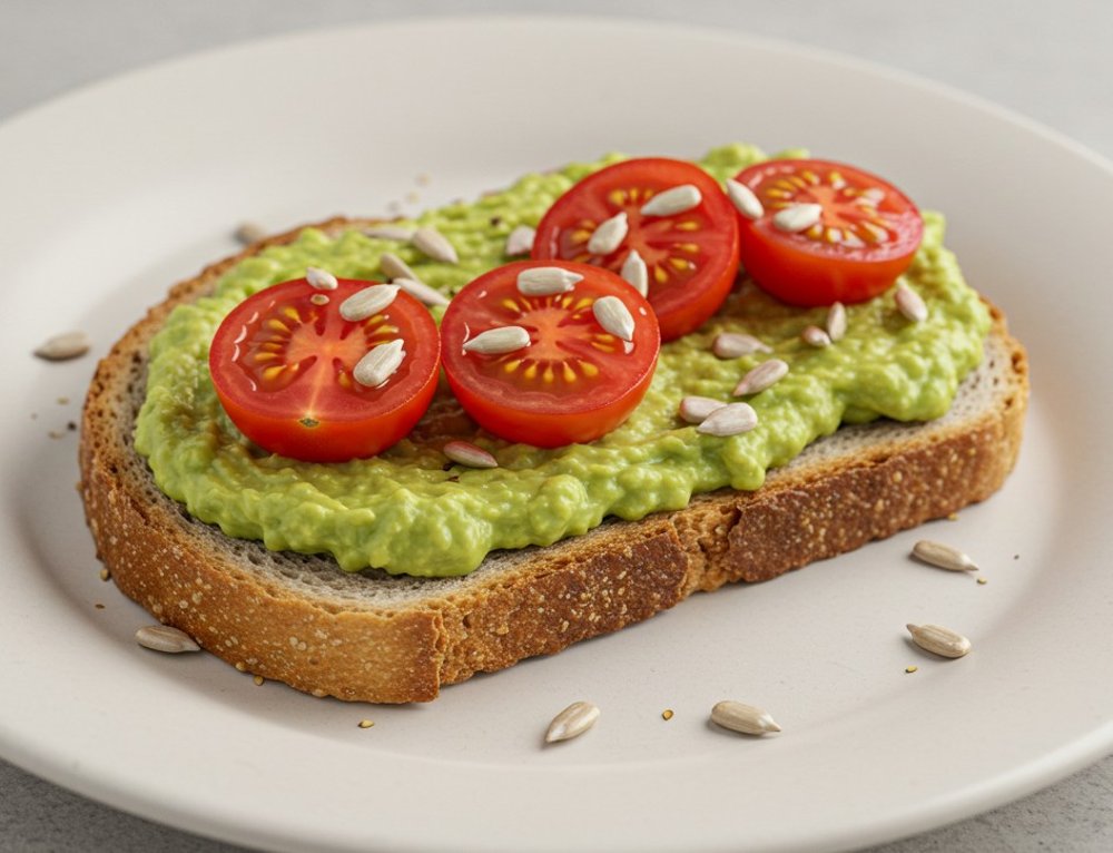 Pan campesino con puré de palta, huevo frito (opcional), tomate cherry.