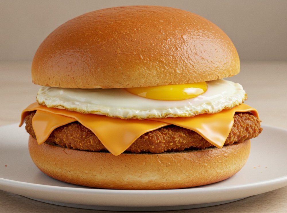 Sandwich de dos tenders de pollo crispy con huevo, queso y salsa spicy