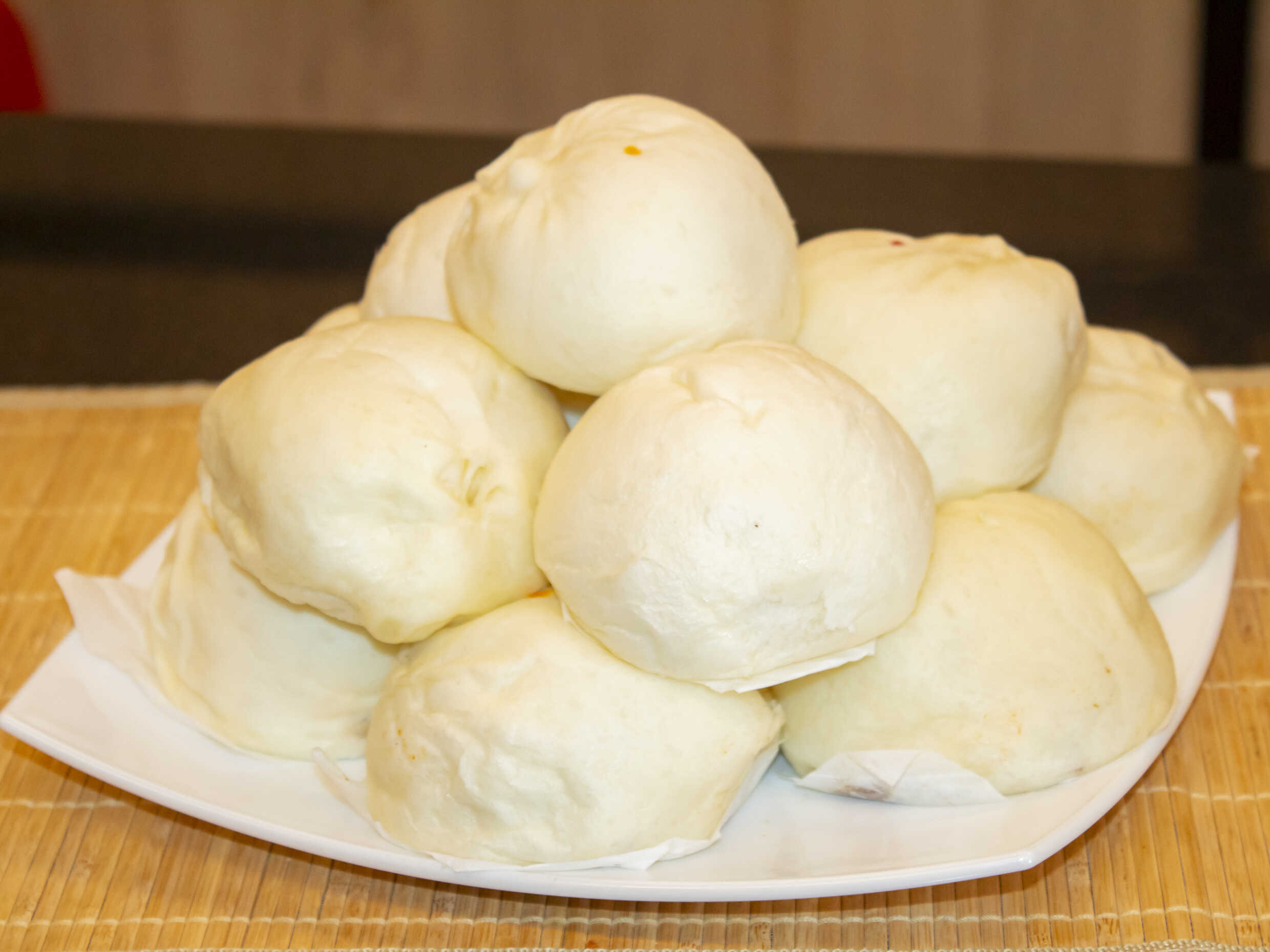 Min pao al vapor relleno de pollo.