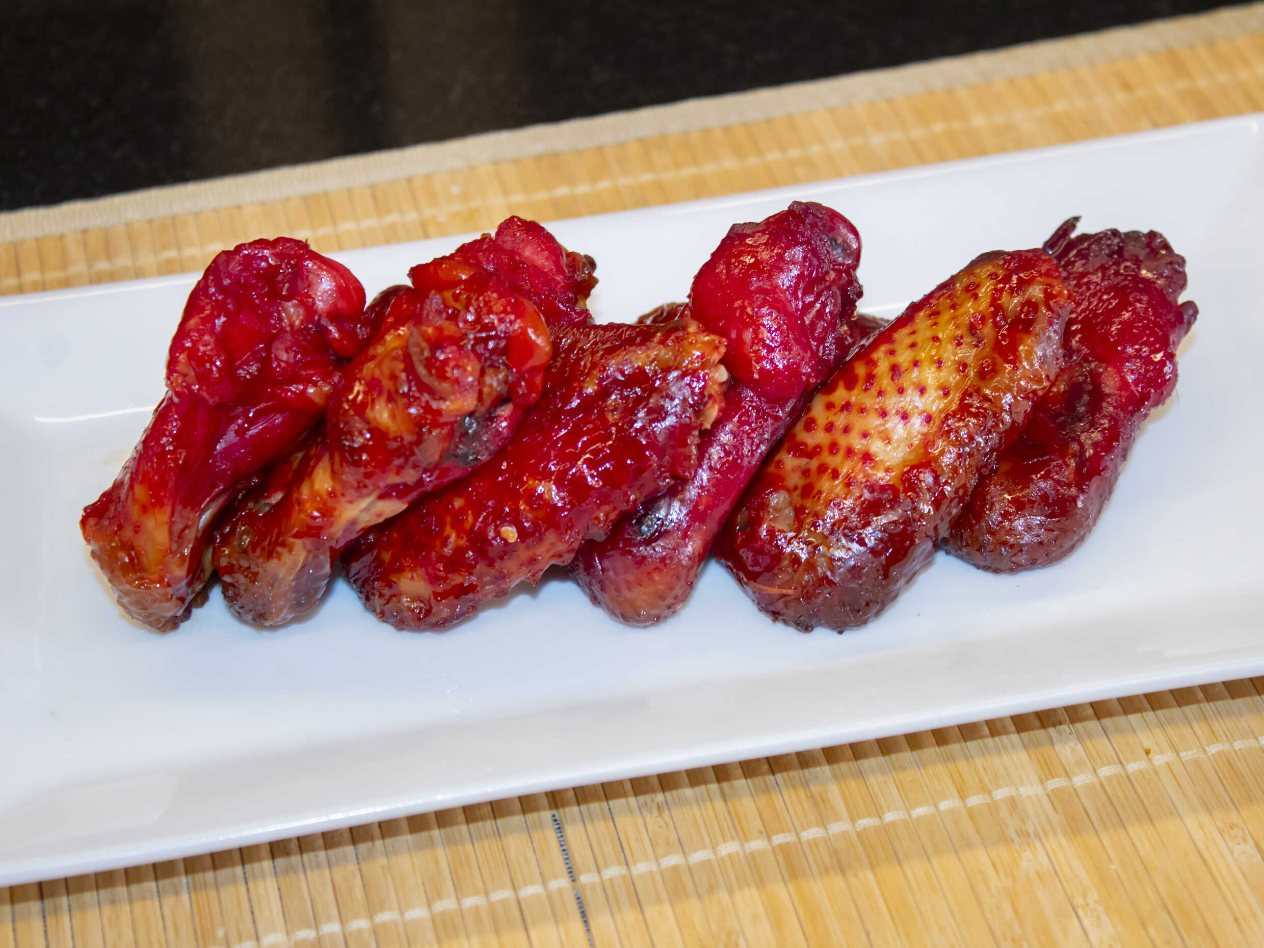 Alitas asadas con puntos picantes.
