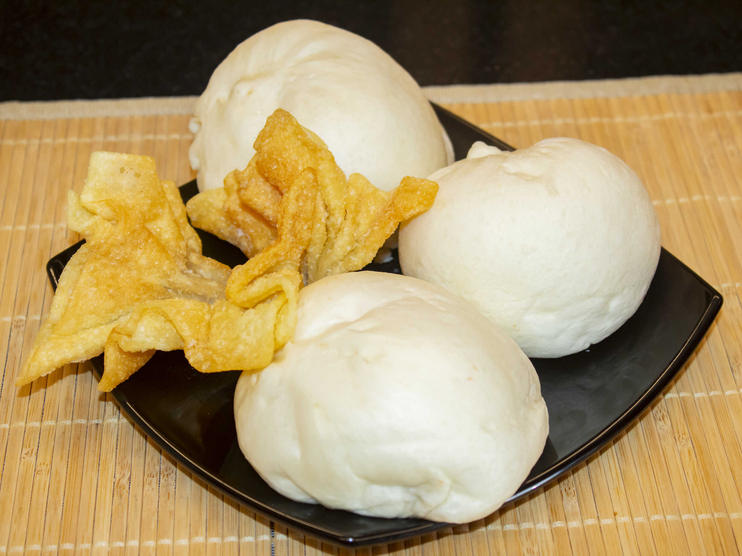 Min pao al vapor relleno de pollo.