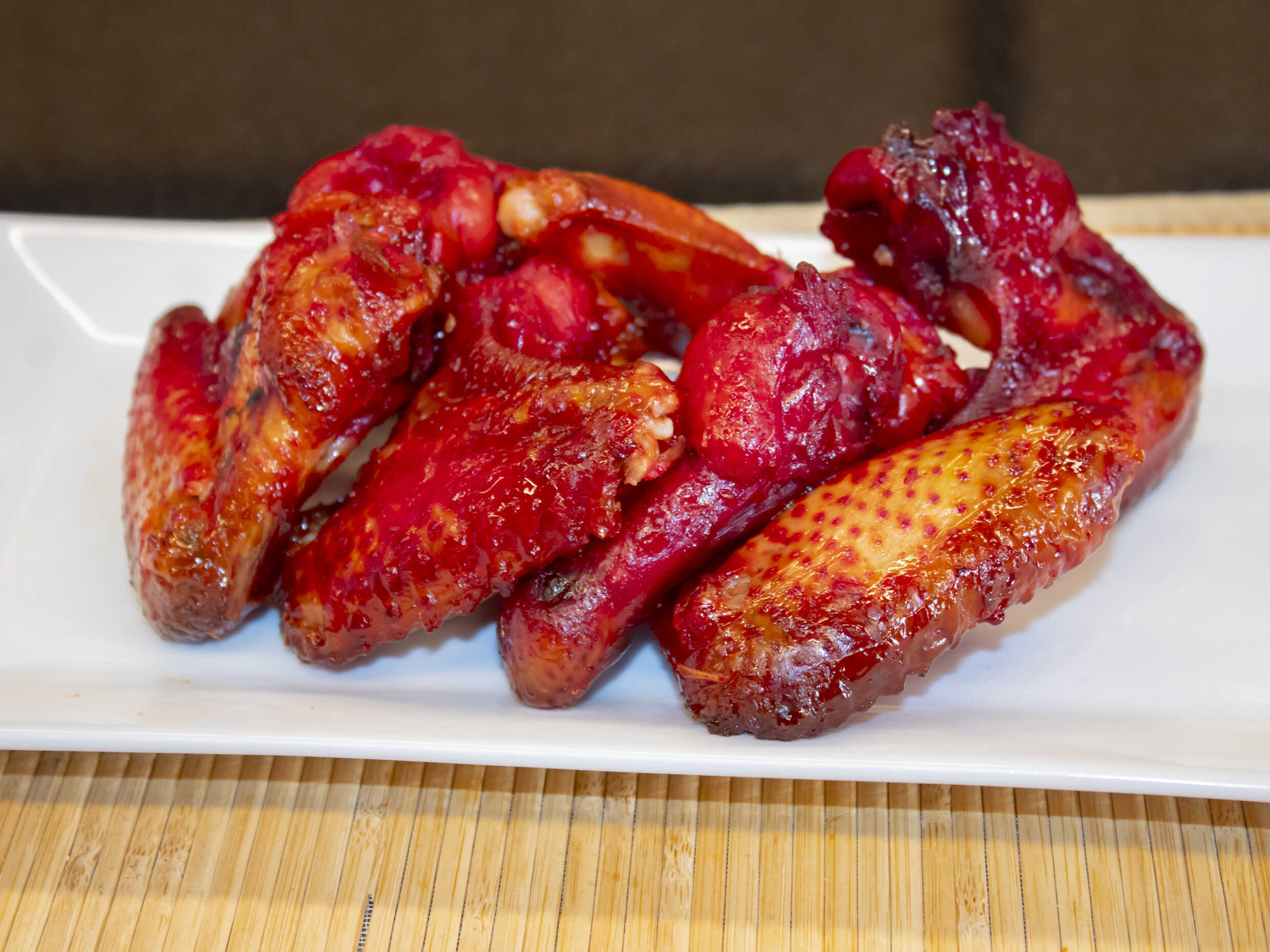 Alitas asadas con puntos picantes.