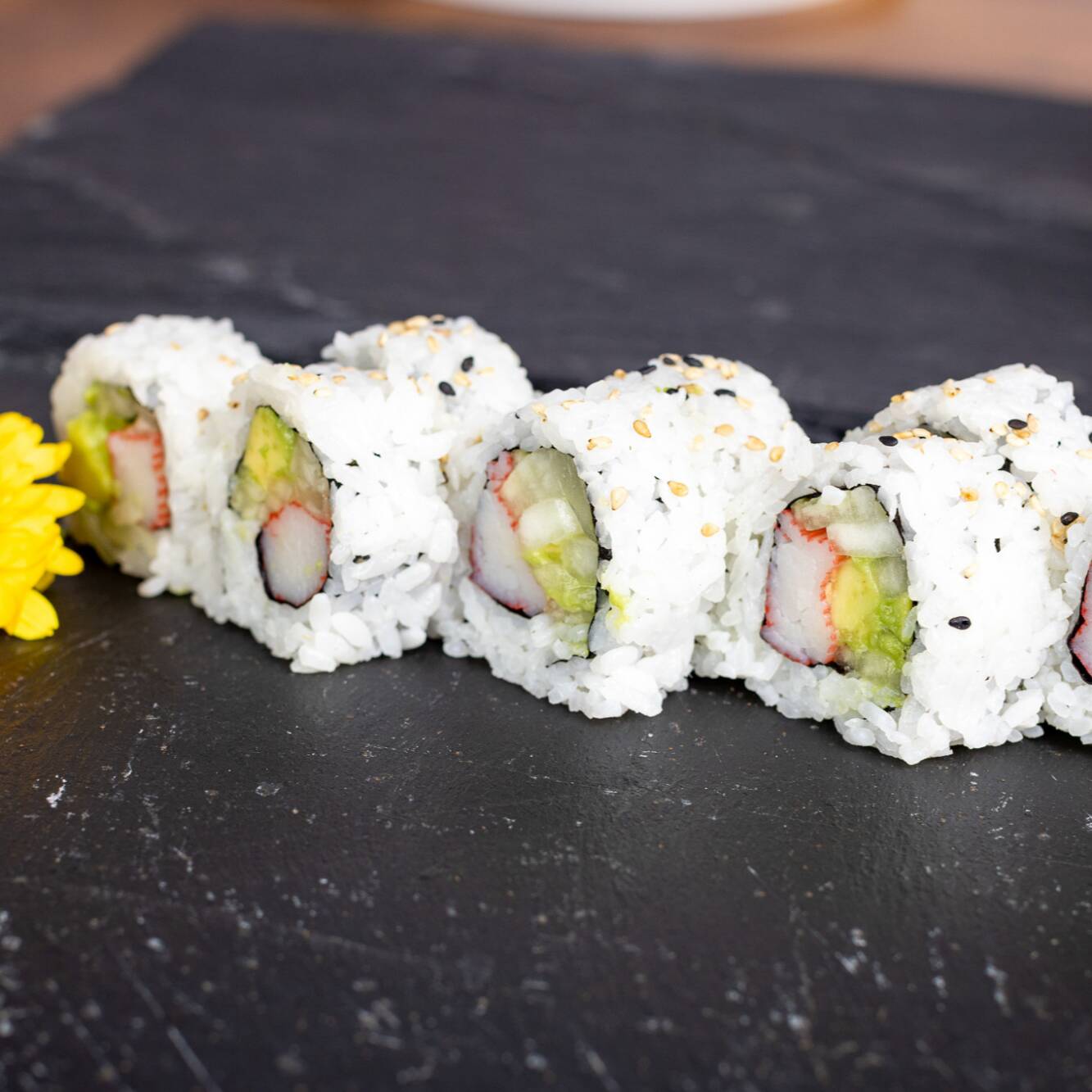 Maki de pescado con pulpa de cangrejo, queso, 10 unidades.