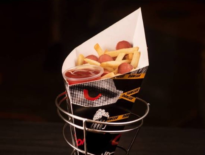 Papas, hot dog, hamburguesa, chorizo y trozos de pollo.