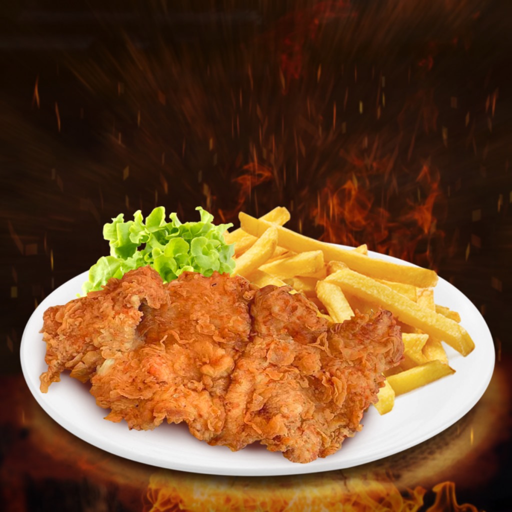 1 Pieza broaster, papas fritas, hot dog y ensalada.