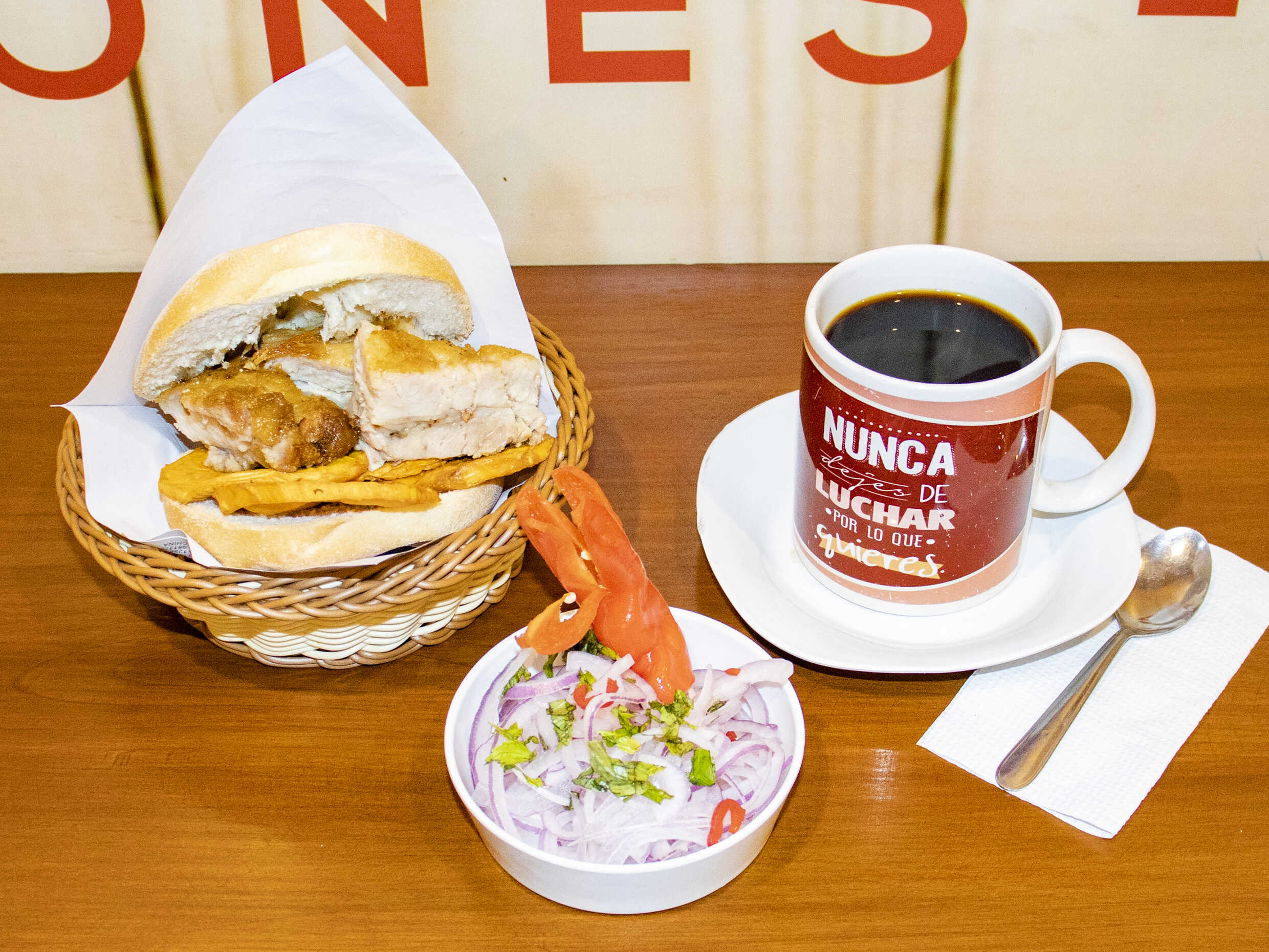PAN C/ CHICHARRON*1 + Café o chicha (250ml)*1