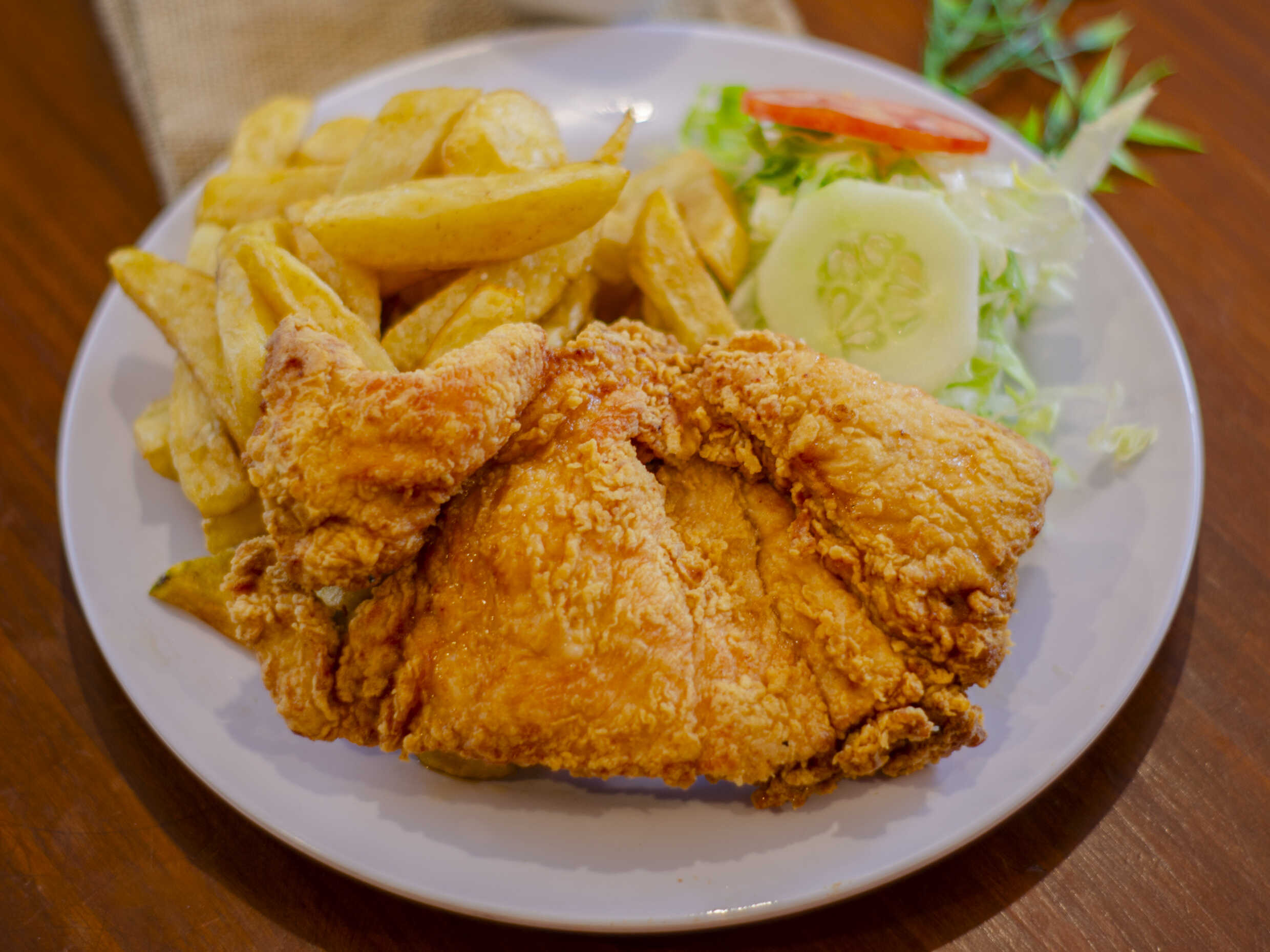 Pollo broaster ala + Papas fritas + ensalada