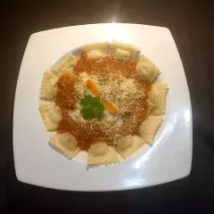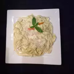 Salsa a lo Alfredo, jamón y queso parmesano.