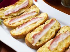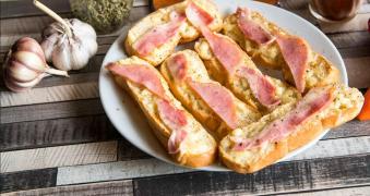 Pan ajo, queso mozzarella, tocino o jamón inglés, 6 unidades.