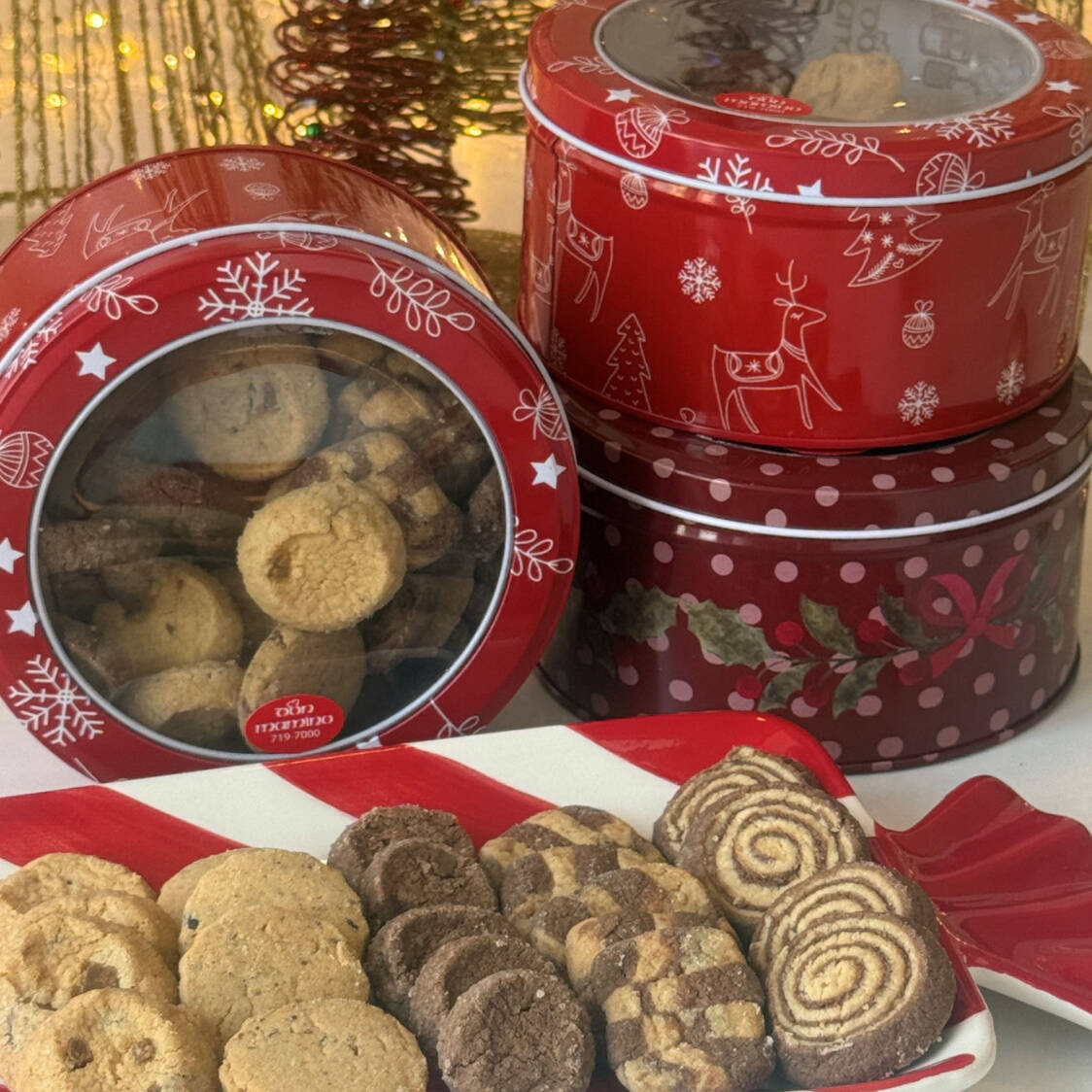 Lata navideña con galletas de mantequilla.