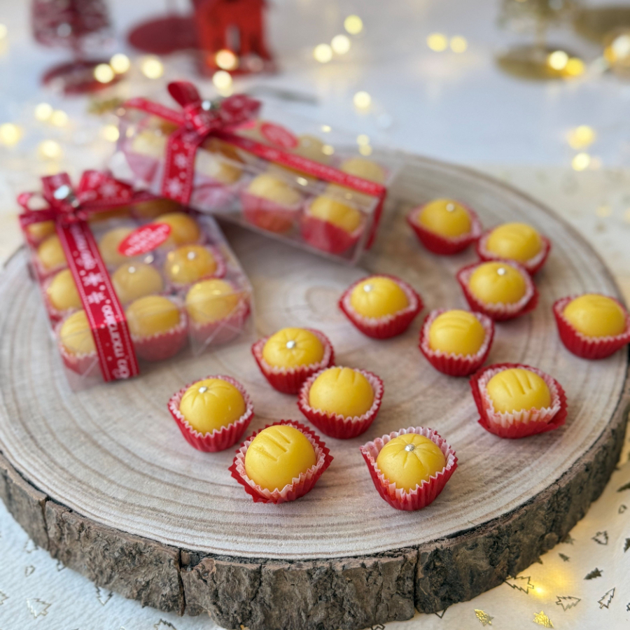 Masa de yema de huevo, leche y azúcar. Contiene 12 unidades.