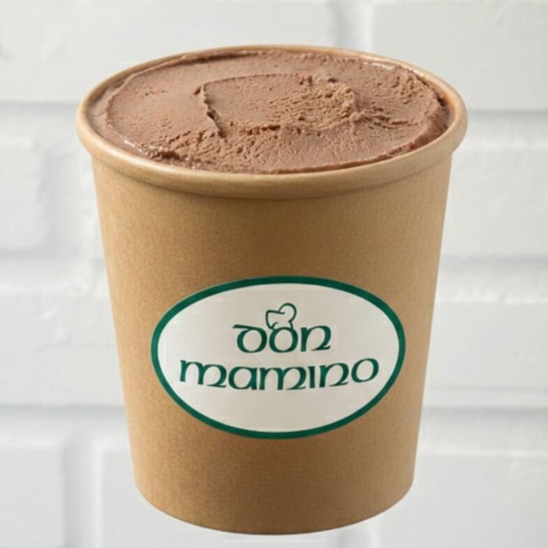 Helado artesanal sabor a lúcuma con trozos de brownie.