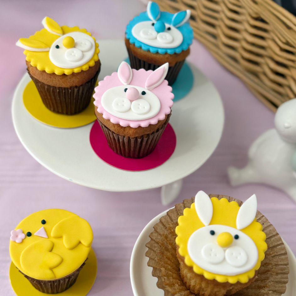 Muffin de vainilla, decorado con masa fondant.