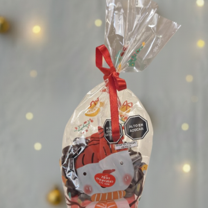 Hojuelas crocantes de maíz cubiertas de chocolate bitter en presentación de 100 gramos.