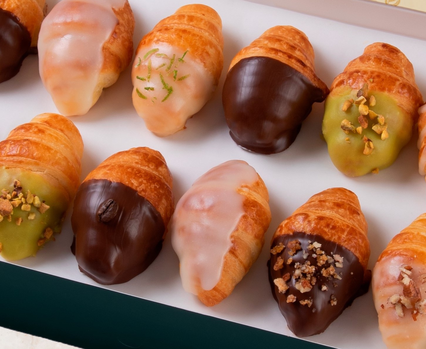 Contiene 6 danesas rellenas de crema pastelera y de sabores surtidos de: Durazno, piña, manzana, manjarblanco, fudge y pistachos (sabores sujetos a stock).