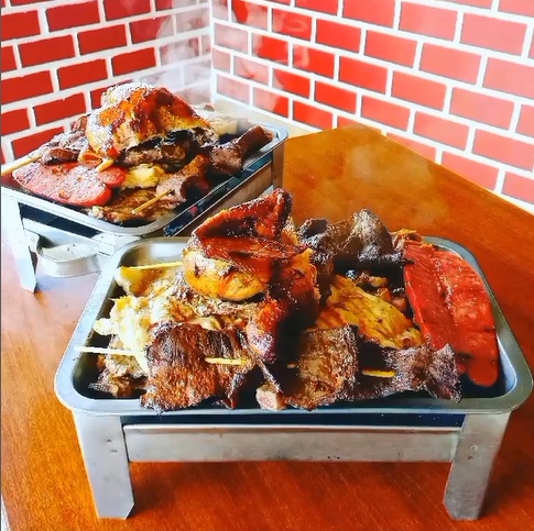 1 Lomo fino, 1 churrasco, 2 palitos de anticuchos, 1 chorizo y 2 costillas de cerdo.