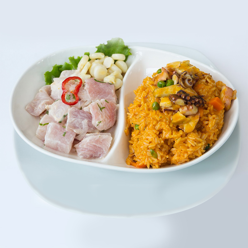 Ceviche de Pescado con Arroz con Mariscos