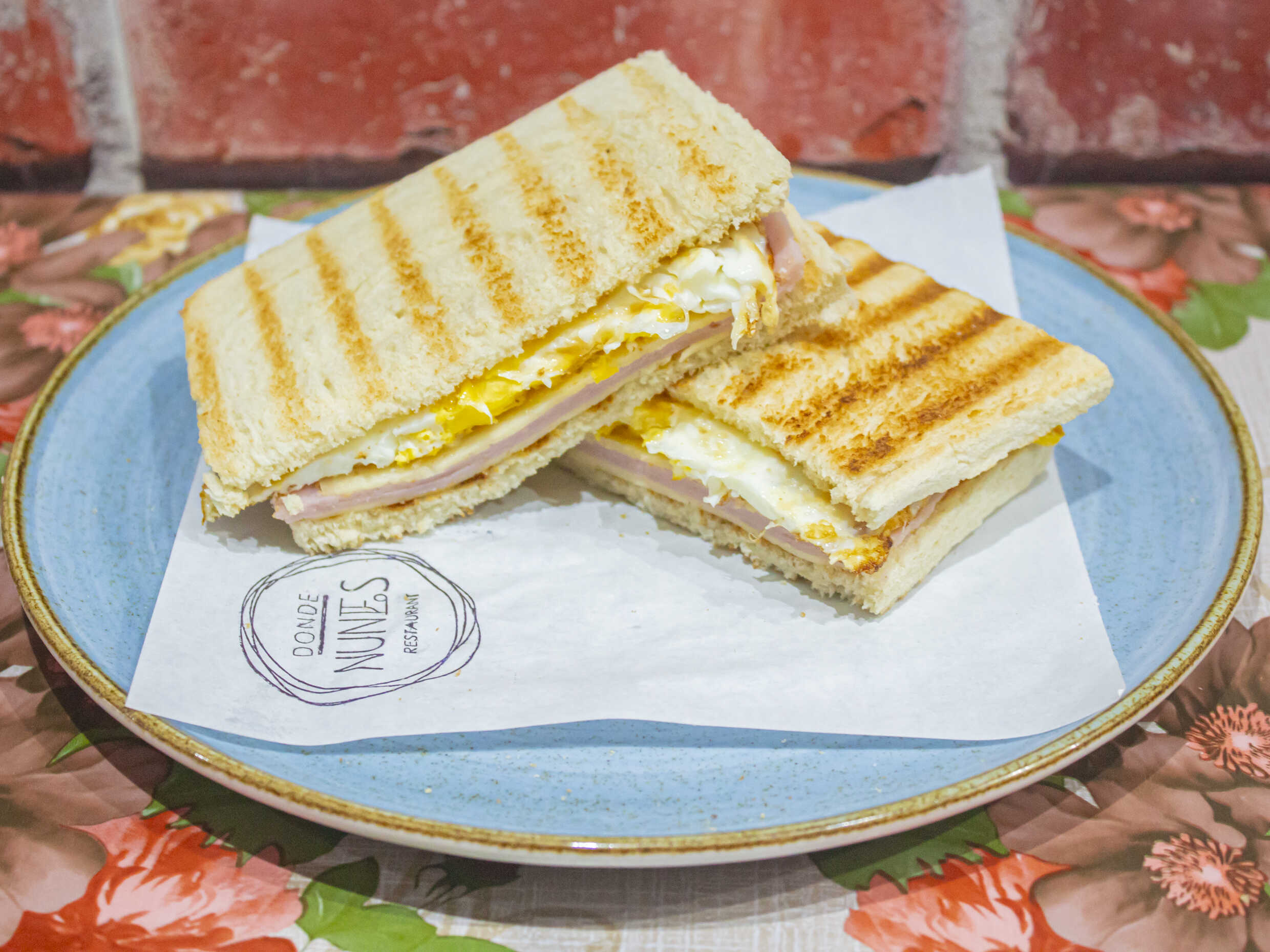 2 Pan molde relleno de jamón ingles, queso edam y huevo. tostado en waflera