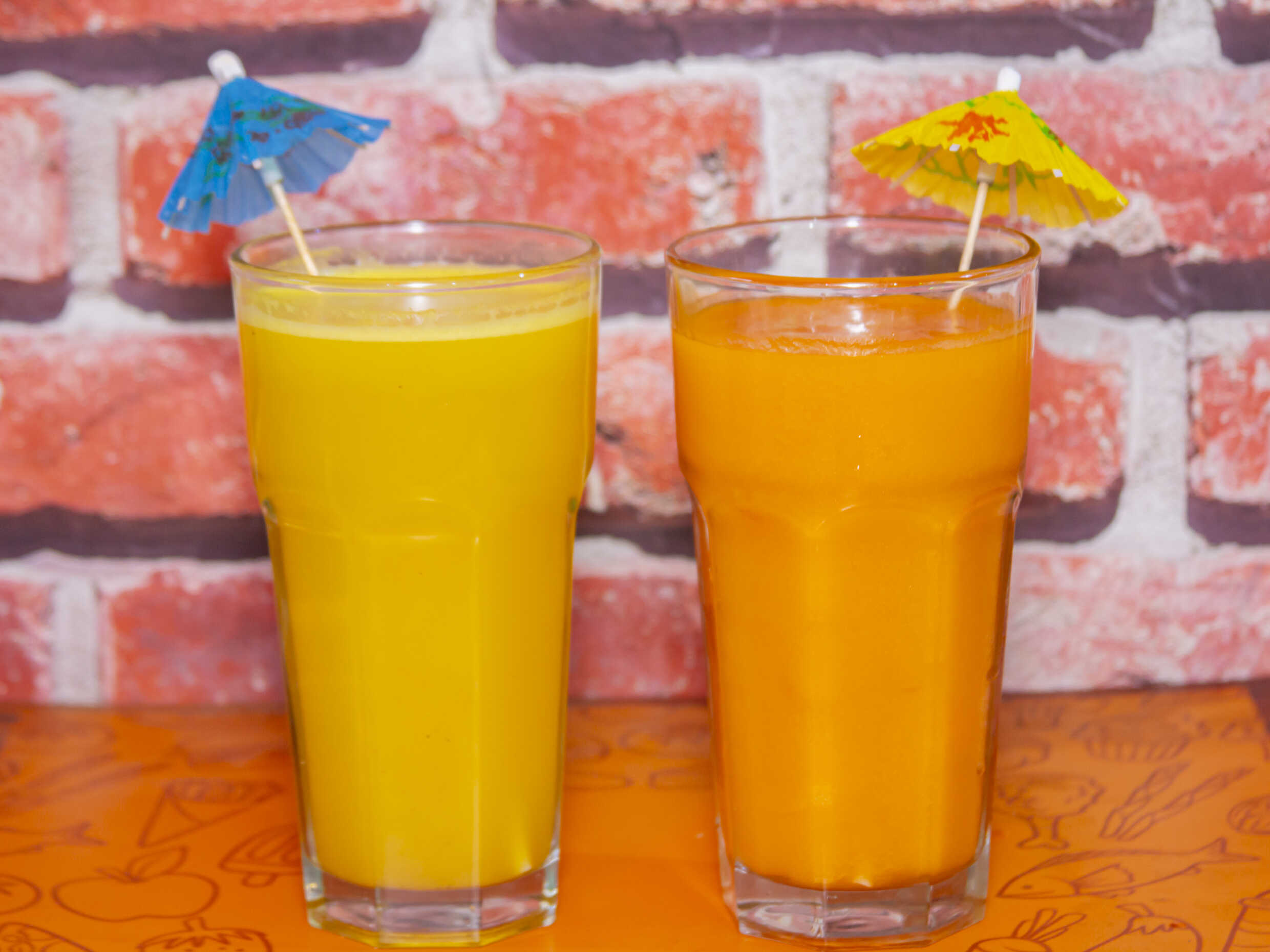 Jugo hecho de frutas frescas puede servirse helado o sin helar y con o sin azúcar.