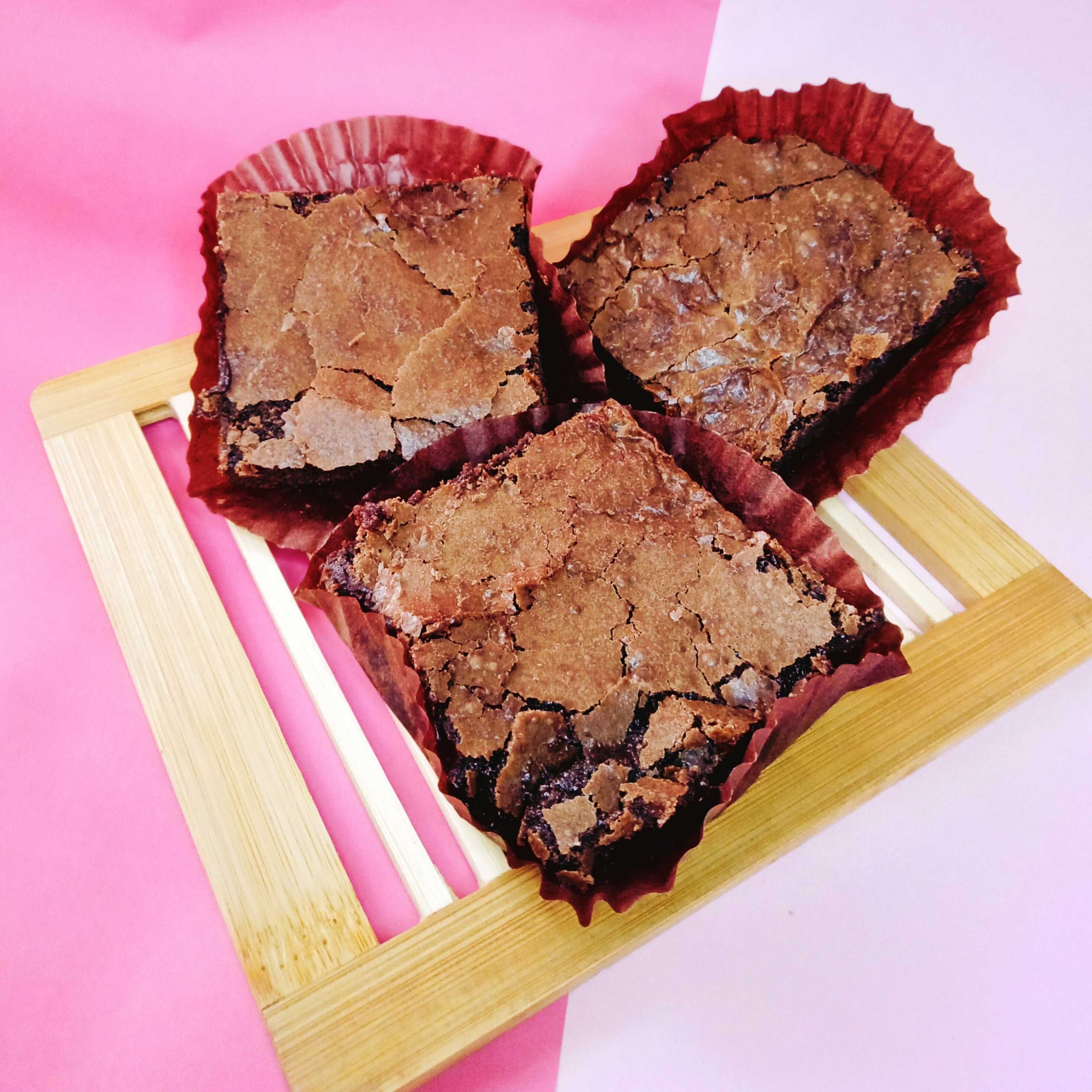Brownie melcochudo de chocolate de 7 x 7 cm.