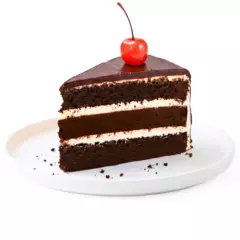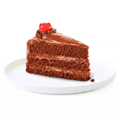 Bizcocho esponjoso sabor chocolate, relleno y cubierto con ganache de chocolate.