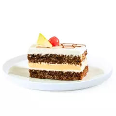 Torta con capas de bizcocho de cacao y cobertura crujiente.