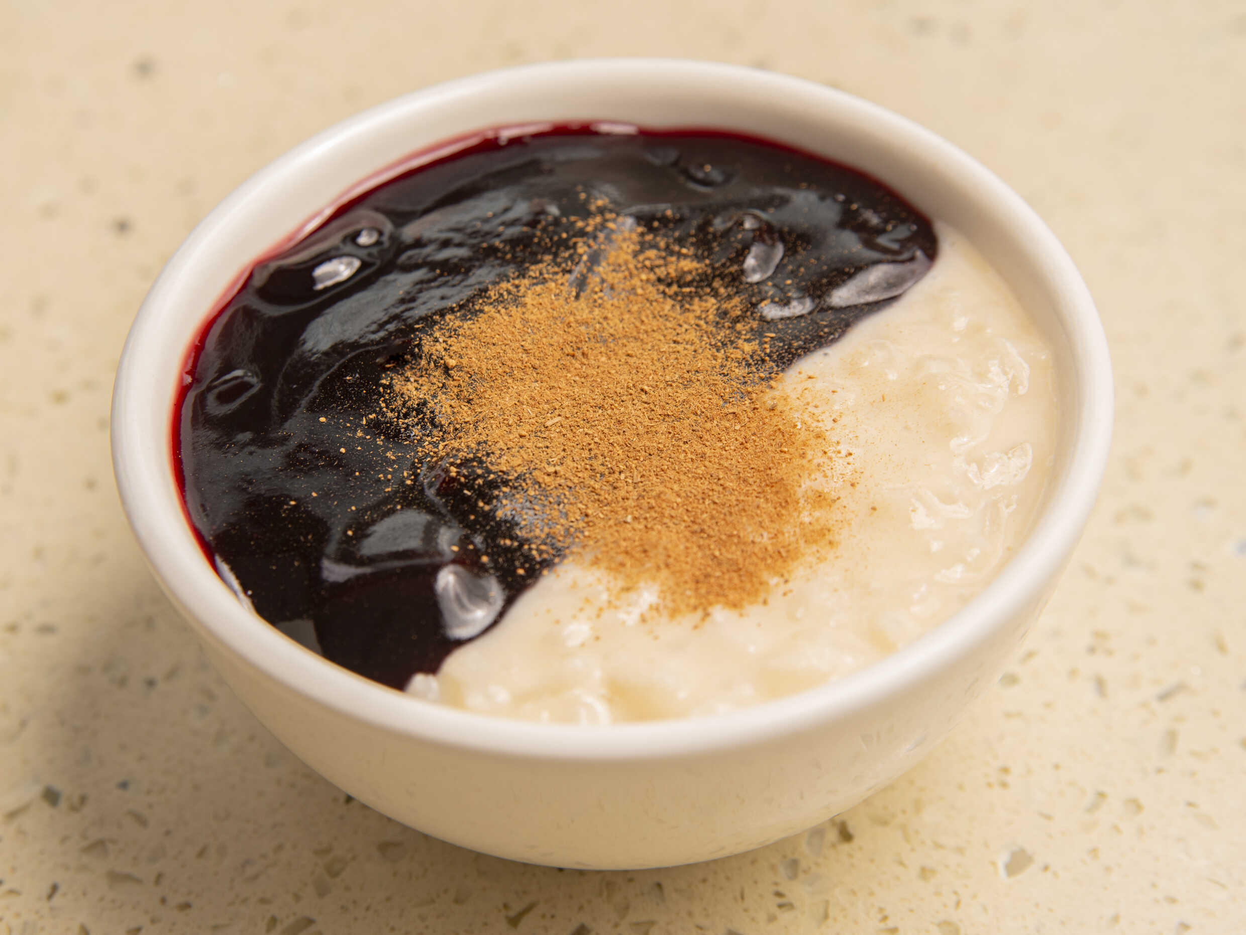 Combinado de mazamorra morada y arroz con leche 250 ml.