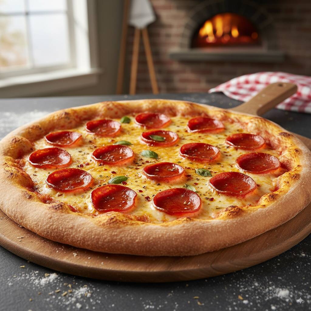 Masa Artesanal, Salsa de Tomate, Mozarella, Peperoni