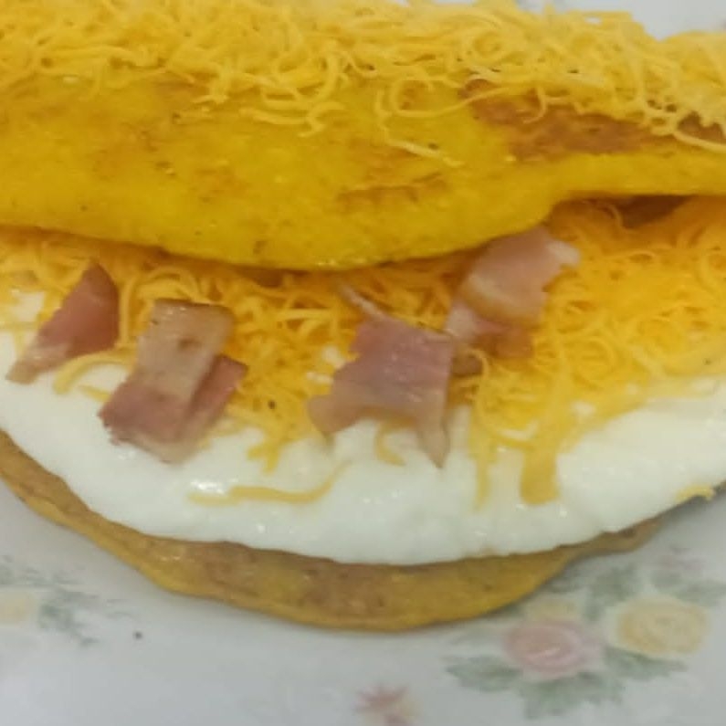 Cachapa con queso de mano y tocineta.